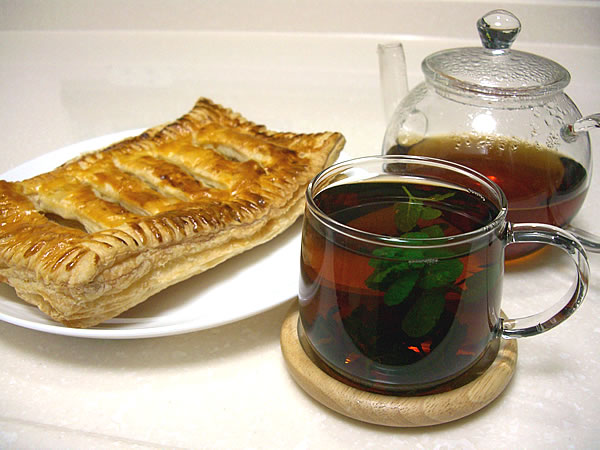 アップルパイと一緒に楽しむのは、ミント紅茶です。