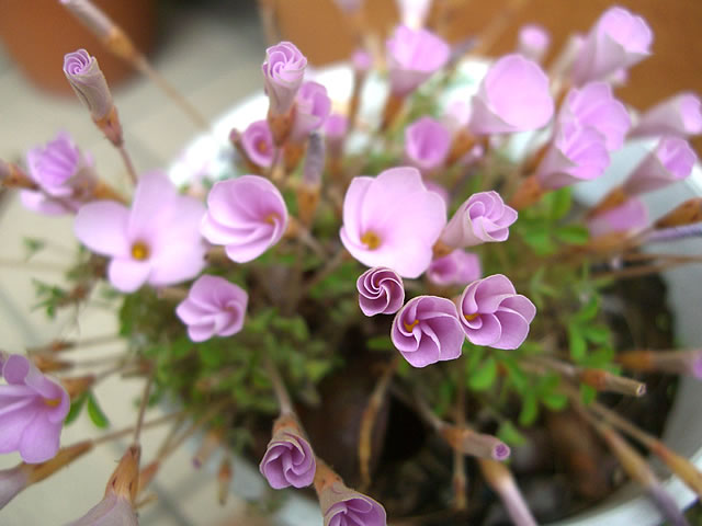 オキザリスは、日が当たると花を開き、曇りや雨の日は花を閉じます。