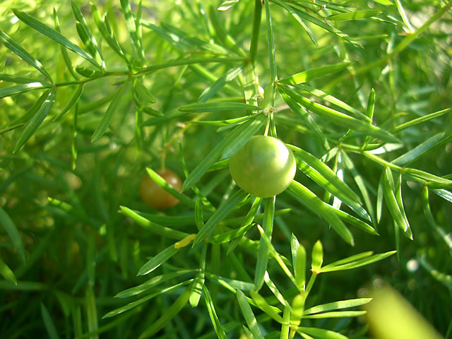 8月に花が咲いていたアスパラガス・スプレンゲリーに、ぽつぽつと実がなっていました。